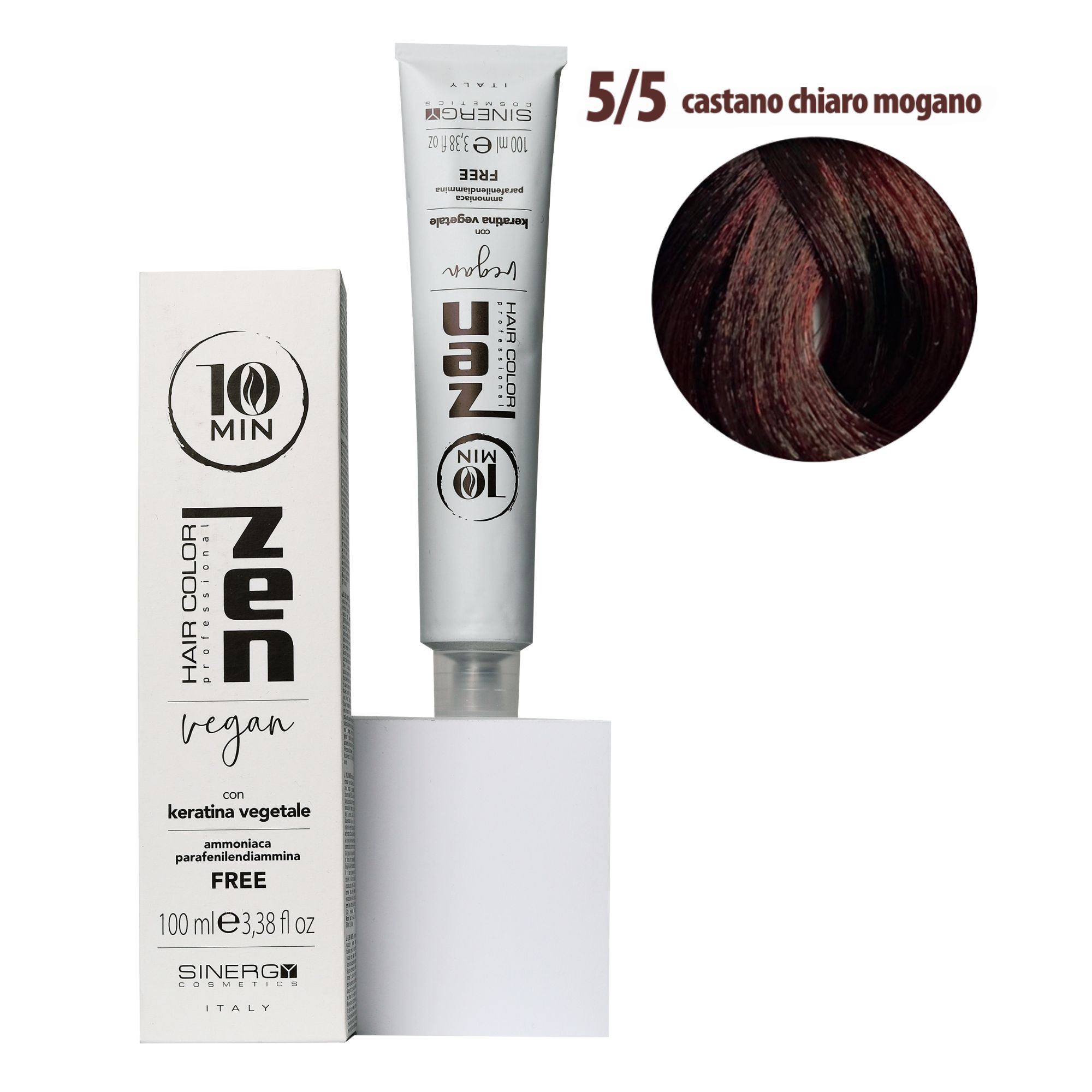 Sinergy Zen Professional Hair Color - професійна безаміачна крем-фарба для волосся. Властивості захисту і пом'якшення притаманні гідролізу кератину, який входить до складу фарби. В поєднанні з рослинними оліями натурального походження надає фарбі Zen захисного впливу на шкірний покрив, і допомагає уникнути, таким чином, сухості і ламкості волосся.