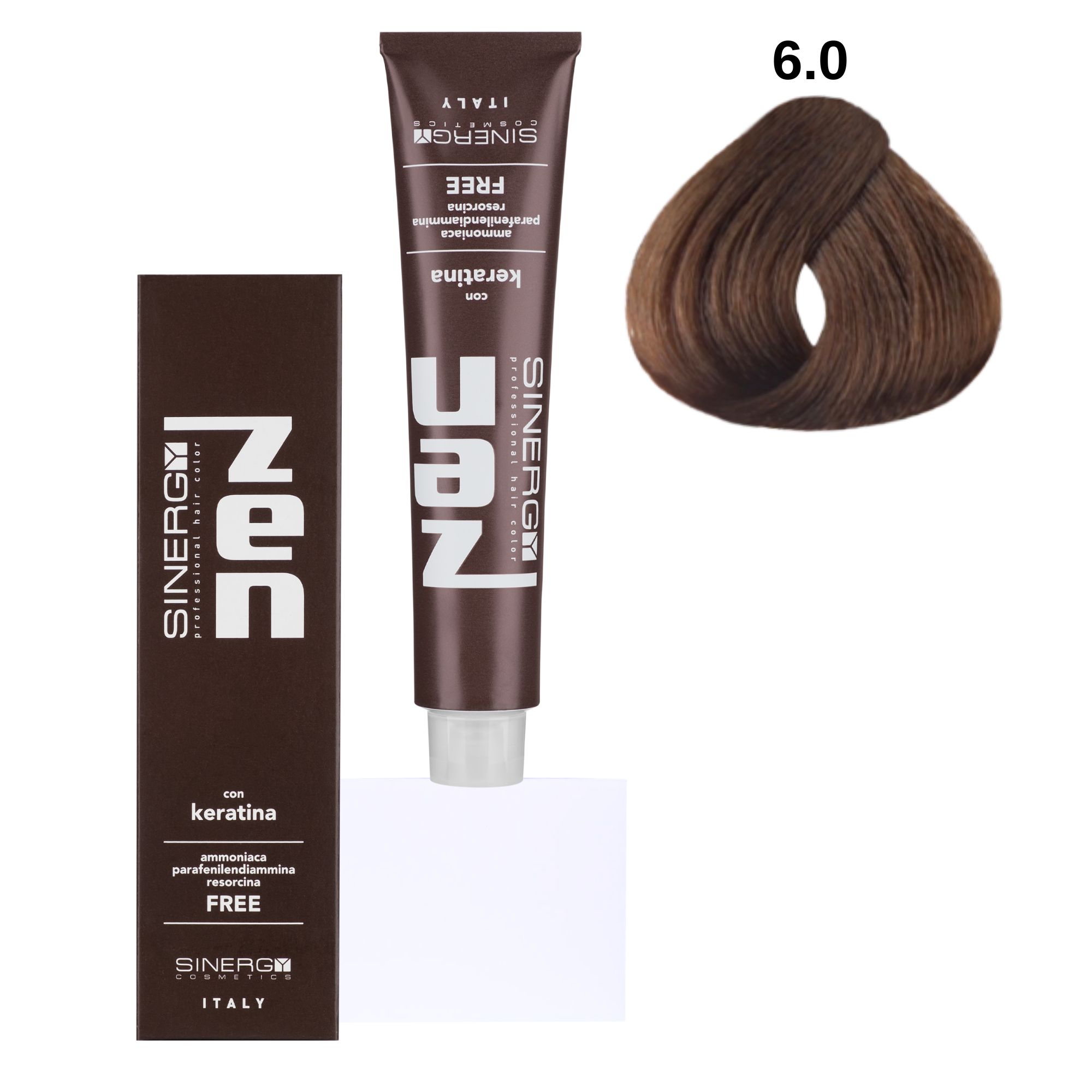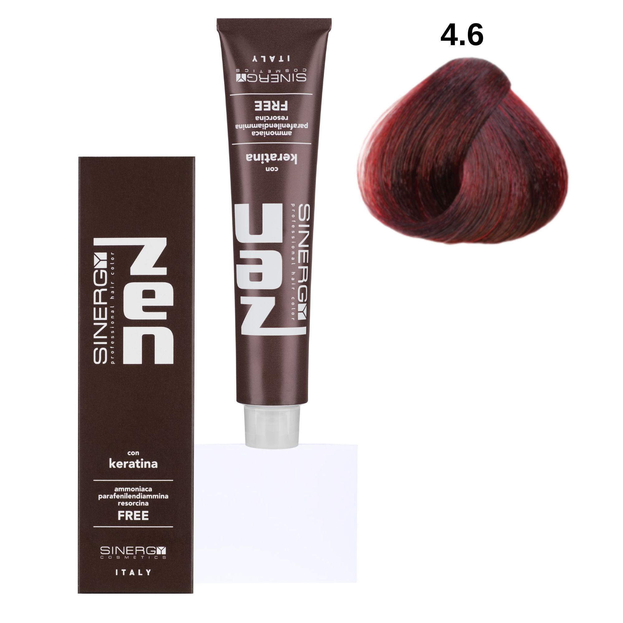 Sinergy Zen Professional Hair Color - професійна безаміачна крем-фарба для волосся. Властивості захисту і пом'якшення притаманні гідролізу кератину, який входить до складу фарби. В поєднанні з рослинними оліями натурального походження надає фарбі Zen захисного впливу на шкірний покрив, і допомагає уникнути, таким чином, сухості і ламкості волосся.