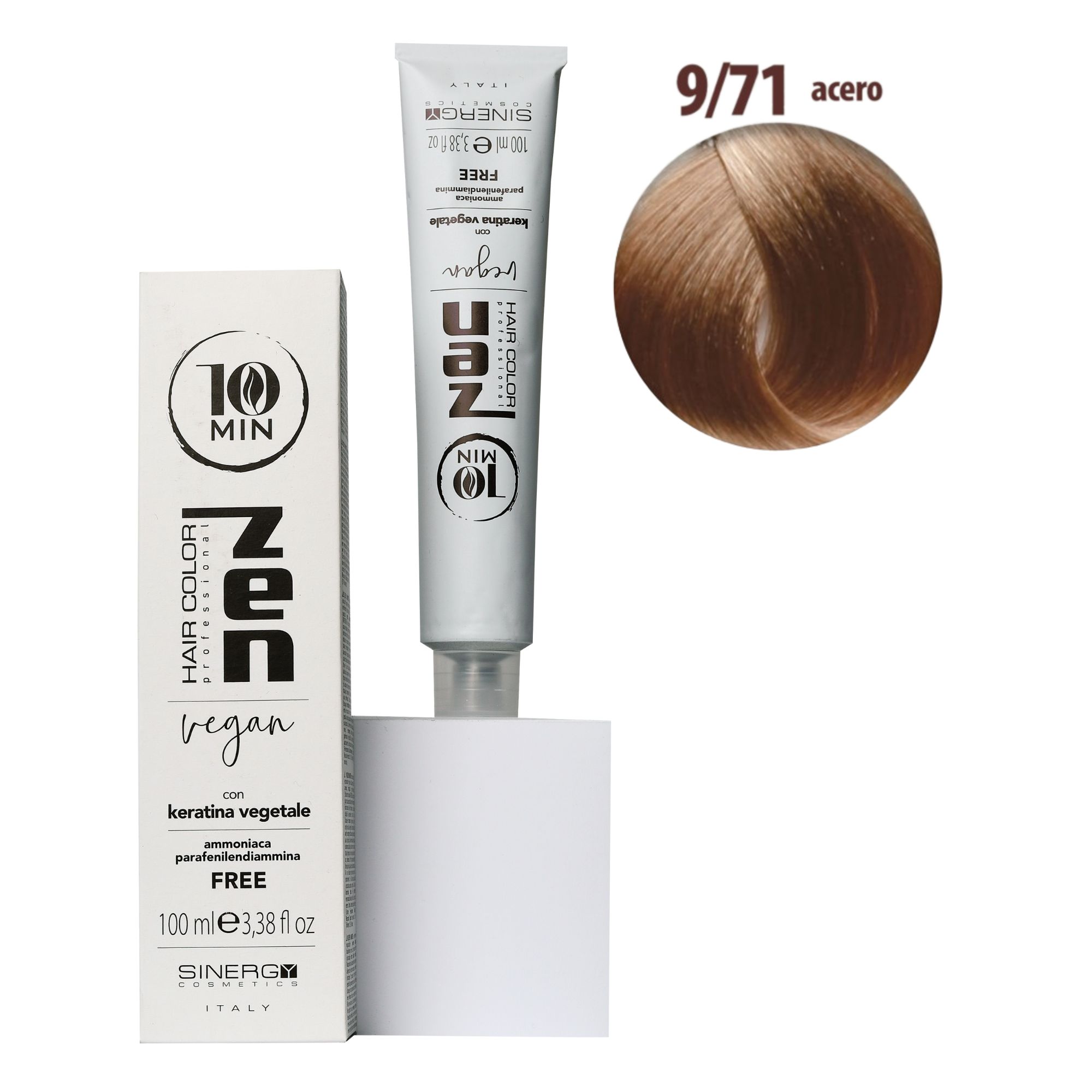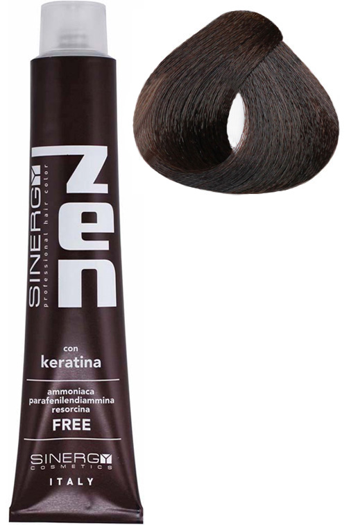 Крем-фарба для волосся Sinergy Zen 10 min 4/0, 100 мл - фантастична парфумована крем-фарба з рослинними амінокислотами (рослинним кератином), без аміаку та парафенілендіаміну. ЇЇ інноваційна, унікальна у світі формула забезпечує якісне фарбування в рекордно короткі строки. Дивовижні результати та приголомшливий блиск усього за 10 хв. Крем-фарба для волосся Sinergy Zen 10 min - сприяє забезпеченню рівномірного покриття кольором та результату високої стійкості.Унікальна мультивалентна система фарбування волосся відрізняється глибиною та інтенсивністю одержуваних відтінків та блиском здорового волосся. У складі цінні натуральні компоненти (олія асаї, гідролізована кіноа, олія насіння соняшнику,екстракт органічної бавовни), що захищають структуру волосся і захищають від втрати вологи, що перешкоджають подразненню шкіри голови.