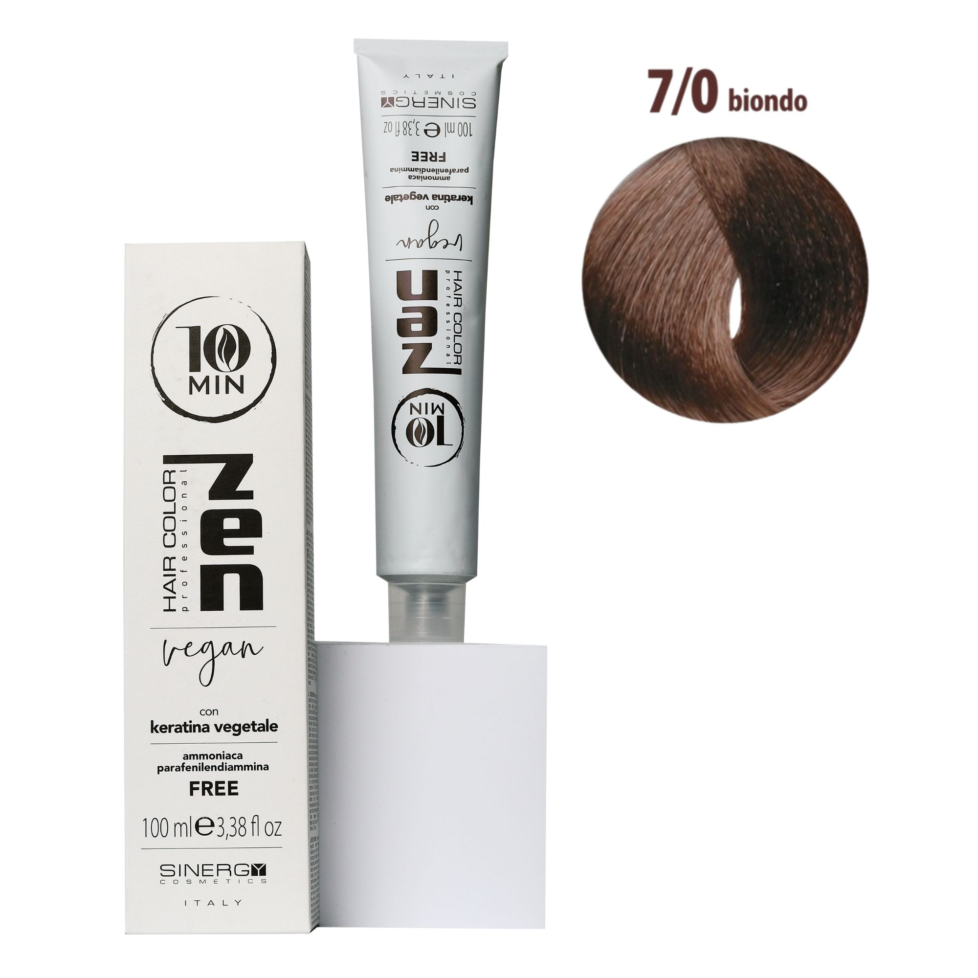 Крем-фарба для волосся Sinergy Zen 10 min 9/0, 100мл - фантастична парфумована крем-фарба з рослинними амінокислотами (рослинним кератином), без аміаку та парафенілендіаміну. ЇЇ інноваційна, унікальна у світі формула забезпечує якісне фарбування в рекордно короткі строки. Дивовижні результати та приголомшливий блиск усього за 10 хв. Крем-фарба для волосся Sinergy Zen 10 min - сприяє забезпеченню рівномірного покриття кольором та результату високої стійкості.Унікальна мультивалентна система фарбування волосся відрізняється глибиною та інтенсивністю одержуваних відтінків та блиском здорового волосся. У складі цінні натуральні компоненти (олія асаї, гідролізована кіноа, олія насіння соняшнику,екстракт органічної бавовни), що захищають структуру волосся і захищають від втрати вологи, що перешкоджають подразненню шкіри голови.