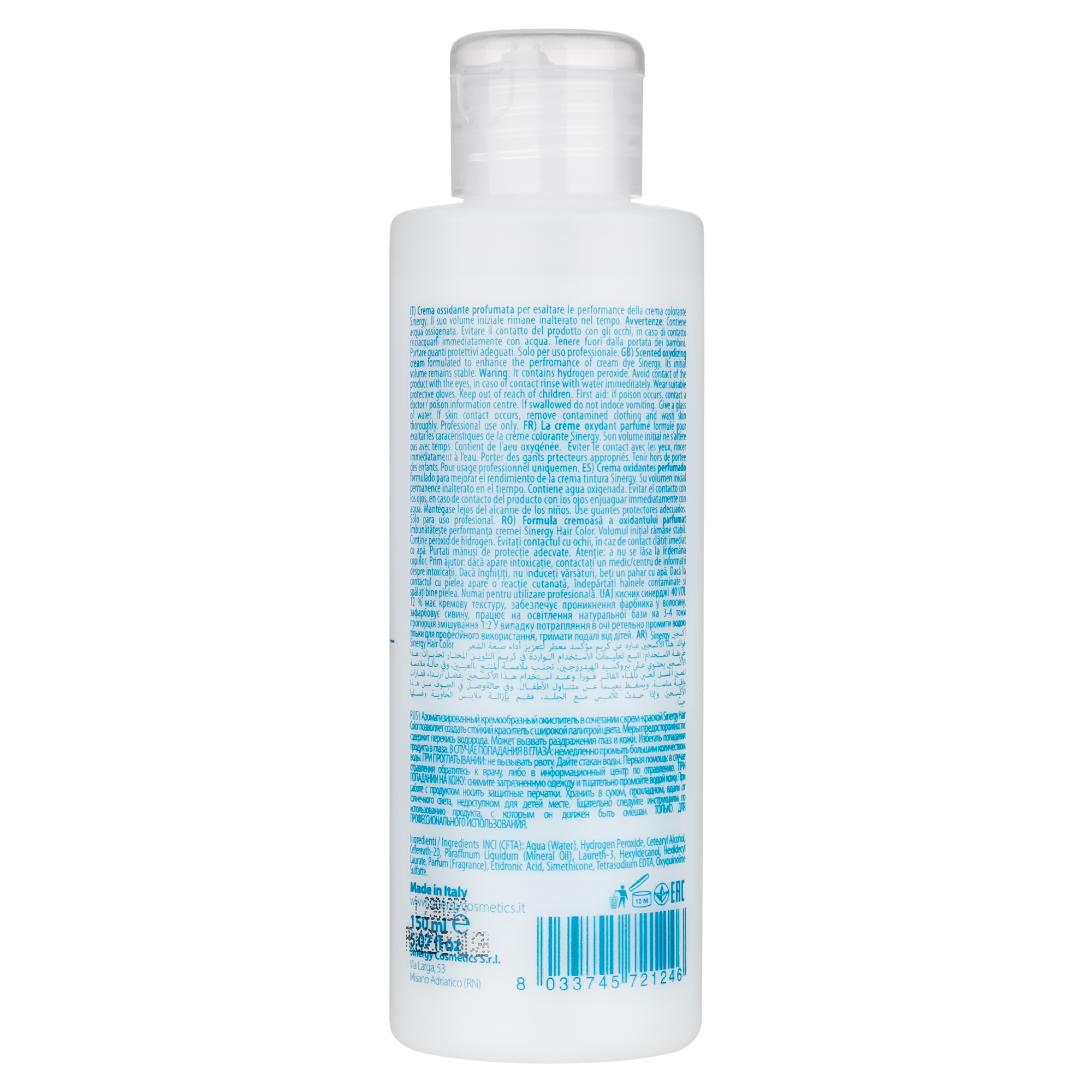 Aqua (Water), Hydrogen Peroxide, Cetearyl Alcohol, Cetereath-20, Paraffinum Liquidum (Mineral Oil), Laureth-3, Hexyldecanol, Hexildecyl Laurate, Parfum (Fragrance), Etidronic Acid, Simethicone, Tetrasodium EDTA, Oxyquinoline Sulfatte.