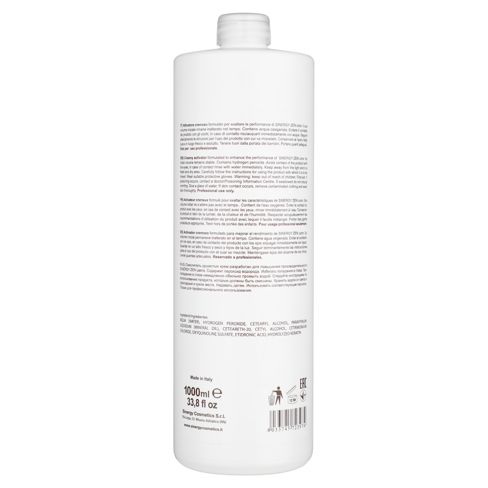Sinergy ZEN ароматизований крем-оксидант був розроблений для підвищення продуктивності професійної фарби для волосся ZEN. Косметичні та відновні властивості кератину в поєднанні з технологією створення забезпечують м'яку, кремоподібну і легку в застосуванні текстуру. На додаток до високостабілізуючої і захисної дії, робить волосся м'яким і насиченим з яскравим і стійким кольором.