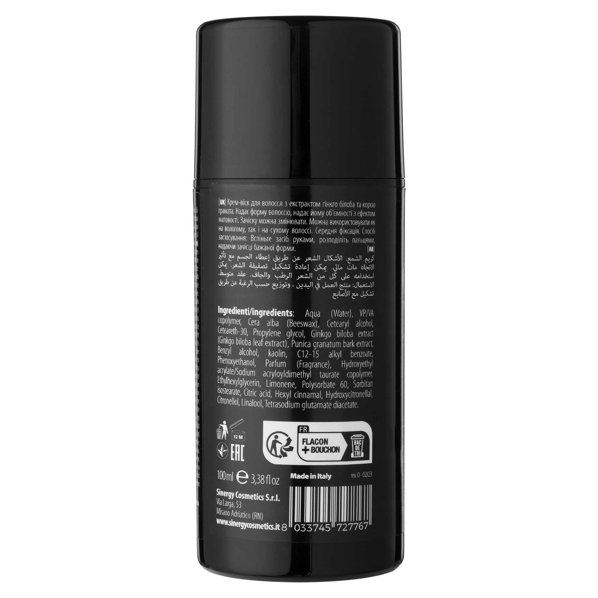 Містить екстракт гінкго білоба та кору граната. Віск має особливу функцію легкого нанесення, не обтяжує, а навпаки надає легкості та об’єму укладанню, утримує форму змодельованої зачіски навіть у найвітряніші дні.